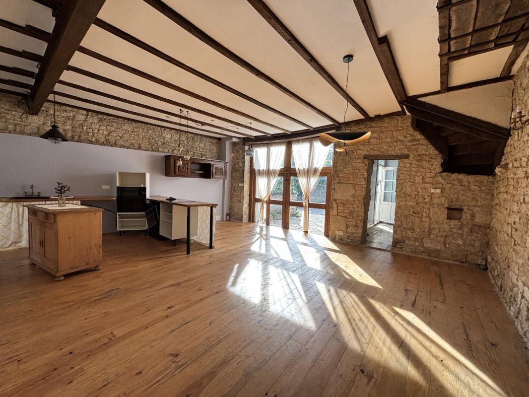 ERA immobilier vous propose en exclusivité cette jolie maison de centre-bourg.Au coeur du bourg de Nanteuil-en-Vallée, ce bien de caractère allie authenticité et cachet avec ses murs en pierre apparente, à deux pas des commerces et services.Elle se compose au rez-de-chaussée d'une entrée, une pièce de vie de 40m² qui réunit cuisine ouverte, séjour et salle à manger, une salle d'eau avec WC. L'espace de vie est chauffé par un poêle à granulés, l'entrée et la salle d'eau par un chauffage au sol. Au premier étage deux chambres, une salle de bains avec WC.Au deuxième, un grenier aménagé en bureau avec une partie couchage. L'aménagement du grenier peut-être varié.Profitez des extérieurs grâce à une agréable terrasse de 25m² derrière la maison, sans vis-à-vis et un préau couvert de 22m², idéal pour les moments de détente, sans les contraintes d'un jardin à entretenir.Une autre terrasse devant la maison de 23m² peut éventuellement être utilisée en espace de parking.La maison est reliée au tout à l'égout.Idéalement située dans le centre de Nanteuil-en-Vallée, la maison se situe au coeur de l'un des plus beaux villages de Charente. Différents commerces et services sont présents dans le bourg: épicerie avec dépôt de pains, poste, pharmacie, deux auberges, salon de thé, maison médicale (médecin, kiné, psy), école maternelle et primaire.Ruffec 10 minutesAngoulême 45 minutesAéroport de Poitiers 1hAéroport de Limoges 1h10Les honoraires sont à la charge de l'acquéreurCe bien vous est présenté par Jérôme ParonneauRSAC 2023AC00037 EI00336 98 15 36 18jerome.paronneau@eraimmo.fr