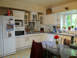 En rez-de-chaussée: Entrée, séjour/salon avec insert, mezzanine, salle à manger, cuisine avec éléments bas et hauts, four, plaque gaz, lave vaisselle, salle de bains + douche, wc.A l'étage: Palier/dégagement, quatre chambres dont une avec salle d'eau et wc, second palier, salle de jeux.Cave.En dépendances: Deux garages.Jardin clos sur 2049 m².