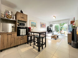 Situé dans le quartier recherché Saint-Jean / L'Estagnol, au sein d'une résidence sécurisée et parfaitement entretenue de 2018, ce 2 pièces de 40 m² en rez-de-jardin constitue une opportunité rare sur le secteur.À proximité immédiate des commerces, des écoles et à quelques minutes des plages, l'appartement offre un cadre de vie calme et verdoyant.La pièce de vie, lumineuse et exposée plein Sud, s'ouvre sur une grande terrasse prolongée par un jardin privatif de 40 m², un extérieur exceptionnel, idéal pour profiter du soleil et recevoir.L'appartement se compose également d'une cuisine américaine équipée, d'une chambre de 14 m², ainsi que d'une salle d'eau moderne avec WC. L'ensemble est fonctionnel et confortable.Le bien est vendu loué, avec un locataire en place prévoyant de quitter les lieux vers août, offrant une belle flexibilité pour un projet personnel ou un investissement.Deux places de parking en sous-sol sont incluses dans le prix.Un appartement lumineux, moderne et idéalement situé.À visiter sans tarder.