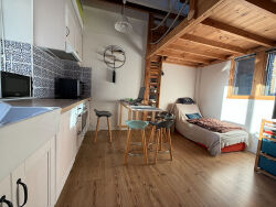 Immeuble de 1948 situé à quelques mètres d'une très belle plage (60mètres)L'appartement de type 2, entièrement rénové avec goût praticité (nombreux rangement permettant d'optimiser l'espace), se compose d'une cuisine aménagée et équipée ouverte sur pièce de vie, une chambre avec salle d'eau et mezzanine. place de parking privative et box de rangement.Ses avantages: petite vue mer, vendu entièrement meublés et équipés!