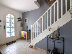 Coup de coeur pour ce pavillon indépendant de type 5 pièces élevé sur sous-sol total.Il est composé d'une entrée donnant sur séjour et salle à manger avec poêle à bois, accès à la terrasse, cuisine indépendante équipée (possibilité d'ouverture), toilettes avec lave-mains. A l'étage un palier dessert 3 chambres et une salle de bains avec toilettes.Le sous-sol comprend un grand garage, un atelier, une buanderie et un espace de stockage. Jardin avec arbres fruitiers et espace potager à l'arrière.Fenêtres double vitrage, volets roulants électriques, chaudière quasi-neuve, portail motorisé, alarme, store sur la terrasse, assainissement aux normes, rien à prévoir.Les informations sur les risques auxquels ce bien est exposé sont disponibles sur le site Géorisques : www.georisques.gouv.fr
