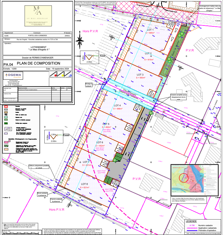 ...Lotissement composé de 8 lots de terrains à bâtir de grande superficie de 452 à 615 m2 avec une...