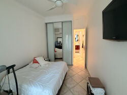 Appartement traversant de 80 m², situé au 1er étage sur 5 d'une résidence bien entretenue.Il se compose d'un séjour spacieux avec cuisine ouverte, ouvrant sur une agréable terrasse, de deux chambres, d'une salle d'eau, et d'un WC indépendant.Le bien est climatisé, lumineux et fonctionnel.Vendu avec un garage ainsi que deux grandes caves, offrant de précieux espaces de stockage.Emplacement recherché, avec l'arrêt du tramway ?Ferber' à proximité immédiate et les plages accessibles en environ 7 minutes à pied.Commerces et commodités à deux pas.