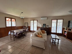 En exclusivité ? TuzanNichée dans un environnement calme et verdoyant, cette maison d'environ 100 m², à remettre au goût du jour, offre un beau potentiel et séduira les amateurs de tranquillité.Elle se compose d'une entrée, d'un petit cellier, de WC séparés, d'une cuisine ouverte sur un salon-séjour lumineux, de quatre chambres, ainsi que d'une salle d'eau.À l'extérieur, vous profiterez d'une spacieuse terrasse couverte, idéale pour des moments de détente en toute saison.Le tout est implanté sur une belle parcelle arborée d'environ 1 761 m², sans vis-à-vis, garantissant calme et intimité.Les annexes complètent ce bien :un grand garage de 50 m²,un abri bois,une dépendance d'environ 20 m², parfaits pour le rangement, un atelier ou des projets supplémentaires.Un bien rare dans un cadre privilégié, à découvrir sans tarder.
