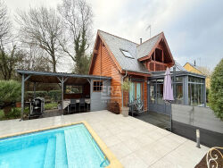 EXCLUSIVITE - Proposée par votre agence ERA LAVAL IMMOBILIER Maison en bois de grand Standing de 165m² le tout sur un terrain de 895 m²Cette ravissante maison de 2007 vous offrira un cadre de vie idéal !Au-rez-de-chaussée :- Entrée, Séjour/Salon, Cuisine aménagée et équipée,- Suite parentale, wc- Dégagement, Buanderie, wc - Grande chambre Au premier étage : - Trois Chambres, Salle D'eau, WC - Balcon Le jardin paysagé entièrement clos, est un véritable havre de paix où vous pourrez vous détendre en toute tranquillité ou organiser des barbecues entre amis autour de la piscine de 9 m x 4m .Les atouts supplémentaires de ce pavillon comprennent un carport attenant, deux abris de jardin cuisine d'été- Pompe à chaleur - Poêle à bois Ne manquez pas cette occasion d'acquérir un bien unique. Contactez nous dès maintenant pour organiser une visite !DPE CGES ADisponible dans votre agence ERA LAVAL IMMOBILIER. Pour visiter, demander Steven JARDIN