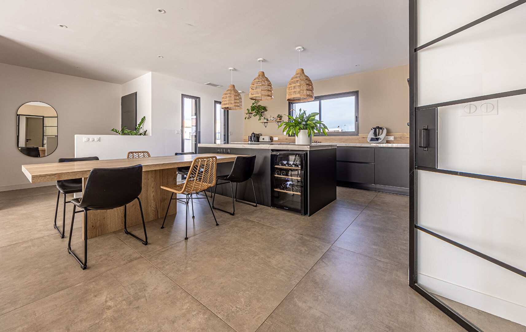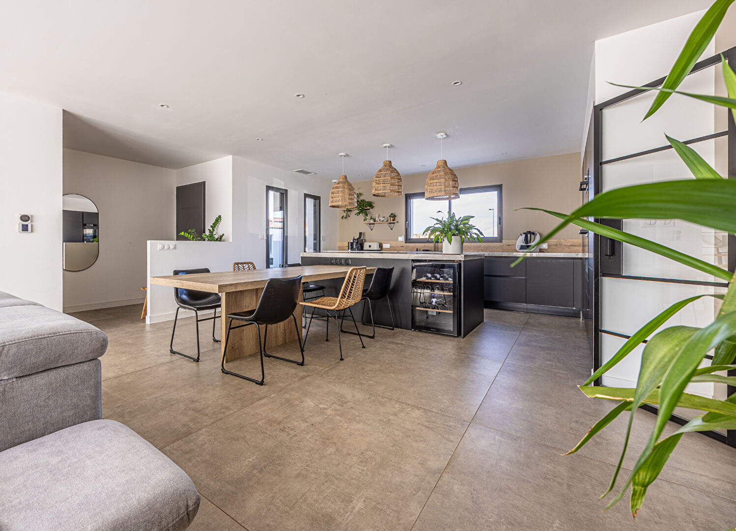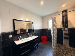 SUR LA COMMUNE DU VERGEROUX CHARMANT PLAIN PIED DE 100 M2 AVEC GARAGE SUR UNE PARCELLE DE 436 M2.L'art de vivre en toute simplicité dans un cadre privilégié.Elle comprend , une entrée avec placard, un vaste salon séjour avec sa cuisine ouverte aménagée et équipée, 3 chambres dont une suite parentale , 2 salle d'eau, un wc, un cellier et un garage.Terrasse et jardin viennent compléter l'ensemble.Pompe à chaleurChauffage au solRT2012