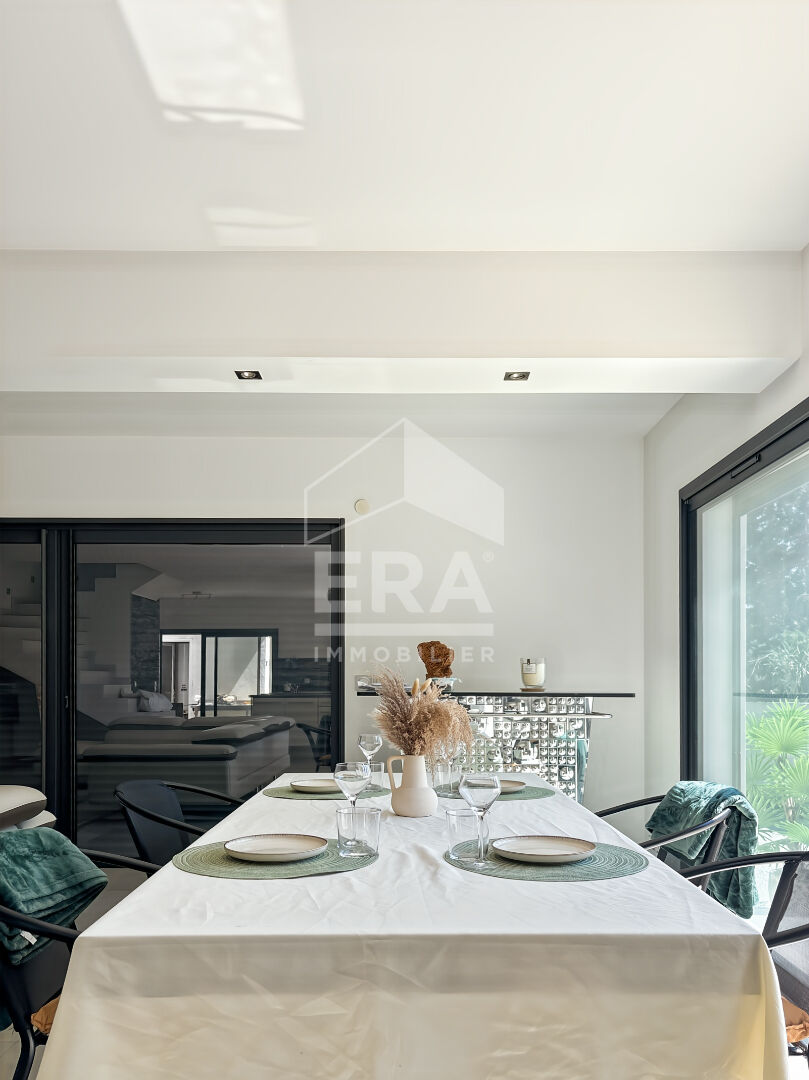 Maison construite en 2010, offrant un agencement fonctionnel sur deux niveaux. Elle se compose de 5 pièces, dont 4 chambres, dont une en rez-de-chaussée, et 1 salle de bain ainsi qu'une salle d'eau. Exposée au sud, la maison bénéficie d'une luminosité optimale et se trouve en très bon état général. La cuisine est ouverte sur le séjour. Sur un terrain beau terrain arboré de plus de 700m2 , la propriété inclut une terrasse et une piscine. Parking et garage. Située dans un quartier calme, elle est à proximité des écoles. Cette maison, au style décoratif actuel, représente un coup de coeur idéal pour une résidence secondaire ou une vie de famille.