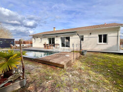 Vous recherchez votre prochain nid douillet? Un endroit ou vous n'aurez plus qu'à poser vos valises et profiter du calme et de la piscine pendant les belles journées?Ne cherchez plus, c'est ici :Située dans un secteur privilégié de Belin-Beliet, au fond d'une impasse d'un lotissement récent, écoles et commodités accessibles à pieds, venez découvrir cette maison de 120m² habitable qui saura vous séduire.Parfaitement pensée et décorée avec gout, vous apprécierez l'ambiance chaleureuse qui s'y dégage dès l'entrée grâce à son lumineux salon-séjour avec chauffage au sol et climatisation réversible. La cuisine ouverte est équipée et fonctionnelle, vous disposerez également d'un accès au cellier, au Wc et au garage attenant isolé et carrelé de 19m² qui laisse l'opportunité de faire évoluer la maison selon vos envies.Coté nuit, vous trouverez trois belles chambres dont une suite parentale avec dressing et salle d'eau, une salle de bain avec douche et un second wc indépendant.A l'extérieur, vous profiterez d'une belle parcelle clôturée sans vis à vis de 755m² ainsi que d'une piscine au sel chauffée parfaitement exposée 7x3 avec son volet immergé et local technique.Portail électrique, Parking goudronné, Tout à l'égout, DPE A, Fibre raccordée, Excellente isolation, Menuiseries double vitrage, Volets roulant électrique, Climatisation réversible, Chauffe eau thermodynamique, Vmc...Vous l'aurez compris, cette charmante maison n'attend plus que vous. Une visite? Rendez-vous dans votre Agence Era Immobilier Le Barp.Chers confrères, nous sommes bien évidemment ouverts à l'inter-cabinet.Toutes les photos sont la propriété exclusive de l'agence ERA IMMOBILIER LE BARP et ne peuvent être utilisées sans autorisation.