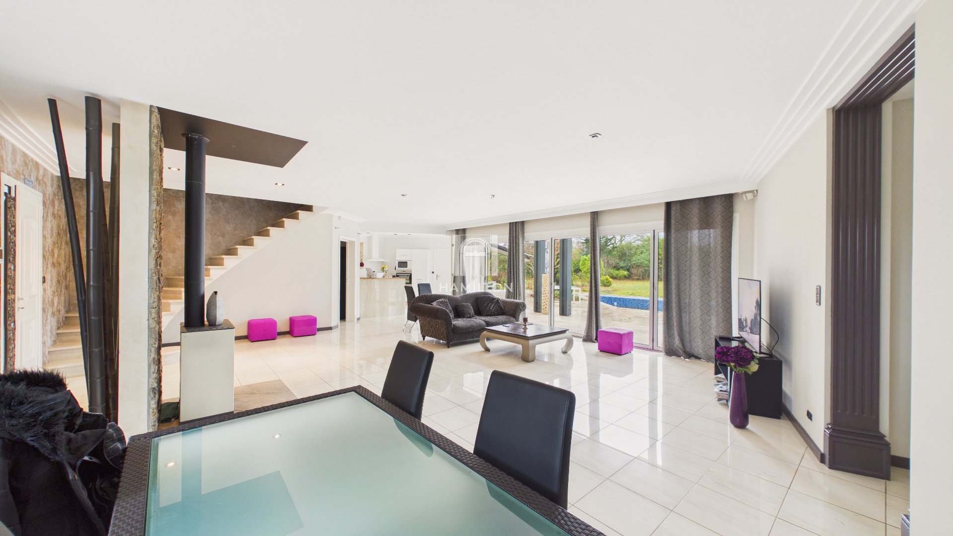 À Sanguinet se dresse une maison contemporaine neuve de grand standing, un véritable écrin de sérénité et de lumière. Cette demeure de 210 m², baignée d'une douce exposition Sud, offre sept pièces dont cinq chambres, parfaites pour accueillir une famille en quête d'harmonie et de confort. Le séjour, orné d'une cheminée chaleureuse, s'ouvre sur une cuisine américaine équipée, invitant à la convivialité et à la création culinaire. Sur un terrain généreux de 13 305 m², sans vis-à-vis, la piscine scintille sous le soleil. Climatisation, digicode et panneaux solaires complètent ce tableau d'excellence. À seulement 1 km des commodités, cette maison conjugue le calme d'un havre de paix. Vous pouvez encore réaliser des extensions à partir des surfaces complémentaires proposées. Cette perle rare est une invitation à vivre l'exception au quotidien. Venez découvrir ce joyau où chaque détail raconte une histoire de prestige et de bien-être.