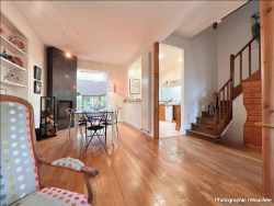 l'agence Era immobilier Chartres vous propose à la vente une très belle meulière de 1920 dans un quartier recherché pour sa proximité gare, commerces et centre-ville. Son allure extérieure est déjà un coup de coeur : un portail avec une cour intérieure pour les vélos, son habillage remarquable avec un savant mélange d'ancien et de contemporain grâce aux huisseries en alu noires. Quelques marches et nous voici à la découverte d'une maison de 146m² qui s'étend sur 3 niveaux et cave totale. Hauteur sous plafond de plus de 3 mètres, l'intégralité du rez-de-chaussée totalise environ 70m², les espaces sont ouverts, le séjour-salon sur parquets d'origine est doté d'une cheminée et une extension s'est parfaitement mariée à l'ensemble en accès direct à notre jardin intimiste. Les étages vous proposent 4 chambres de tailles identiques, bureau, deux salles de bains, dressing. Chauffage au gaz de ville (Viessmann, 5 ans), adoucisseur d'eau.