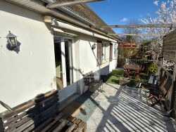 Votre agence Era Caen Université, agence immobilière à Caen vous propose à l'achat sur la commune de Ranville, à seulement 10 minutes de Caen et 5 minutes de la mer, cette MAISON familiale des années 70 édifiée sur sous-sol complet, idéalement située dans une rue calme et peu passante.Implantée sur un terrain traversant d'environ 900 m² sans vis-à-vis, la MAISON offre au rez-de-chaussée une entrée, des toilettes indépendantes, un séjour-salon lumineux de 27 m² avec cuisine semi-ouverte aménagée et équipée, s'ouvrant directement sur une grande terrasse exposée sud-ouest, véritable extension de l'espace de vie. Une chambre ainsi qu'une salle d'eau complètent ce niveau et permettent une confortable vie de plain-pied.À l'étage, un palier dessert trois chambres supplémentaires ainsi qu'une salle de bains.Le sous-sol complet propose, une buanderie et de nombreux espaces de rangement, ainsi qu'une pièce aménagée d'environ 11 m² pouvant accueillir un bureau, une chambre d'amis ou une activité professionnelle indépendante.Vie de plain-pied, luminosité, environnement calme, terrain sans vis-à-vis, proximité mer et Caen.Les prestations techniques comprennent une chaudière gaz récente (2020), des menuiseries PVC double vitrage équipées de volets roulants électriques, garantissant confort et efficacité énergétique au quotidien. Cette MAISON conviendra parfaitement à une famille recherchant espace, tranquillité et accessibilité aux commodités.Les informations sur les risques auxquels ce bien est exposé sont disponibles sur le site Géorisques : www.georisques.gouv.fr