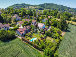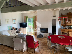ERA L'IMMOBILIERE DU LAC a le plaisir de vous présenter à la vente, cette maison construite en 1980, sur vide sanitaire, située sur la commune de Bilieu, avec vue sur le Lac de Paladru. Calme et luminosité sont au rendez-vous.Avec une surface utile de 298m² et une surface habitable de 240m², elle est composée de 7 pièces dont 4 suites parentales, une pièce de vie lumineuse avec mezzanine, une véranda d'environ 13m² ainsi qu'une cuisine ouverte. Elle dispose d'un studio indépendant d'environ 27m² avec balcon, idéale pour recevoir vos invités ou de la location.Elle est érigée sur un terrain d'une belle surface de 2623m², partiellement clos par la végétation, et constructible (1800 m²).Vous pourrez profiter d'une piscine creusée (9x4) , clôturée avec un portillon et d'une terrasse carrelée d'environ 23m², exposées sud-ouest.Elle dispose notamment d'une buanderie, d'un atelier de 5m² et d'une cave de 11m².Dotée de plusieurs places de stationnement, elle se situe dans un environnement calme, en fond d'impasse, proche de toutes les commodités.Les fenêtres de la maison sont en double vitrage PVC avec volets bois et volets roulants solaires. La cuisine est équipée d'une fenêtre châssis fixe en double vitrage bois avec volet roulant manuel. Mode de chauffage : Cheminée avec insert, chauffage au sol électrique au RDC, radiateurs à l'étage.Installation de 10 panneaux photovoltaïques en 01/2024.Cumulus de 200 L dans la buanderie.Assainissement : tout à l'égout.Travaux à prévoir : Rafraîchissement intérieur/extérieur et finalisation de la suite parentale dans les combles.Ce bien vous intéresse ? Je suis à votre disposition pour de plus amples renseignements et planifier une visite.N'hésitez pas à me contacter au 06x08x55x86x25 Aurélie CHARAVIT.