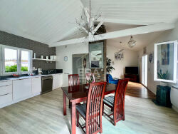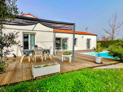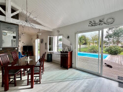Maison de plain-pied, construite en 2010 - offrant une surface habitable d'environ 108 m².Elle se compose de 4 pièces : - Une grande cuisine aménagée et équipée ouverte sur un lumineux espace de vie d'environ 45m²- 3 chambres dont une suite parentale avec salle d'eau.- Une salle d'eau et un wc indépendants. Le bien bénéficie d'une exposition sud, optimisant l'apport de lumière naturelle.La pièce à vivre s'ouvre sur une terrasse ensoleillée bénéficiant d'une piscine enterrée au chlore. Contactez-nous dès aujourd'hui pour une visite privée. ERA Immobilier Royan vous accompagne dans tous vos projets de vie.