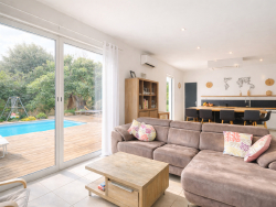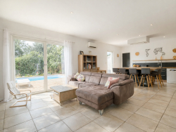 Votre agence Era Immobilier vous propose cette villa T5 de 172 m² construite en 2009 et parfaitement entretenue, avec piscine chauffée et T2 attenant située dans un environnement recherché sur la commune de Furiani.La maison se compose comme suit : Au rez-de-chaussée, une entrée ouvre sur un vaste séjour lumineux avec cheminée, créant une atmosphère chaleureuse et conviviale.La pièce de vie se prolonge sur une cuisine moderne entièrement équipée, dotée d'un îlot central pouvant accueillir jusqu'à 8 personnes, idéale pour recevoir.Ce niveau comprend également trois chambres avec placards, une salle d'eau avec baignoire, un WC indépendant, une buanderie ainsi qu'un espace bureau.À l'étage se trouve une confortable suite parentale comprenant une chambre, un dressing, une salle d'eau avec WC ainsi qu'une terrasse privative offrant une vue dégagée sur les montagnes et le jardin.Toutes les pièces de la maison sont climatisées.Les extérieurs ont été pensés pour profiter pleinement du climat méditerranéen, il y a une grande terrasse en teck de 90m² exposée plein sud, une belle piscine chauffée, une cuisine d'été avec barbecue et un jardin arboré entièrement clôturé, offrant un espace de détente privilégié.Deux places de stationnement privatives complètent l'ensemble.La propriété dispose également d'un appartement T2 attenant de 22m² avec une terrasse privative en bois.Il comprend un séjour avec cuisine ouverte équipée, une chambre et une salle d'eau avec WC.Parfait pour recevoir famille et amis, exercer une activité professionnelle ou générer un revenu locatif.Un emplacement stratégique, au calme tout en restant proche de toutes les commodités : commerces, écoles, transports, à seulement 10 minutes du Centre-ville de Bastia, à 15 minutes de l'aéroport.Cette villa est parfaite pour une famille recherchant espace, confort et tranquillité, tout en bénéficiant d'un cadre de vie privilégié aux portes de Bastia.Renseignements et visites : Océane AGOSTINI- ERA Immobilier Bastia - 06.20.73.26.73