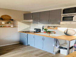 Canet Village, dans une résidence calme et arborée, Appartement T1 avec un beau séjour lumineux donnant sur une terrasse couverte sans vis à vis, une cuisine américaine équipée aménagée, une chambre , une salle d'eau avec WC.Au calme , sans vis à vis , piscine, terrain tennis, proche de toutes commodités et axes rapides.