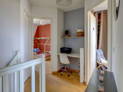 Vous êtes à la recherche d'une ravissante maison située dans un quartier calme mais à la fois proche des commodités à pied ?Alors n'attendez plus, j'ai ce qu'il vous faut !Votre agence vous présente en exclusivité cette ravissante villa T5 d'environ 96m2 implantée sur une parcelle de 300m2 avec jardin sans vis-à-vis.Au rez-de-chaussée, vous découvriez un hall desservant une belle pièce à vivre lumineuse avec cuisine aménagée et un accès au jardin avec une belle terrasse intimiste. Une chambre/bureau avec une buanderie viennent compléter ce niveau.Puis, à l'étage, vous bénéficierez de trois chambres spacieuses, d'une salle de bain, de wc indépendants et d'un coin bureau aménagé dans le dégagement.Possibilité de garer deux voire trois véhicules sur la parcelle;Les plus :- Les places de parking et le stationnement libre dans la rue- La buanderie- L'isolation récente- Le coin bureau- La climatisation réversible - Le calme- La proximité des commerces à piedBien rare à visiter sans tarder !