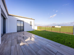 Découvrez cette belle maison neuve de 116 m², située en bordure de champs, offrant un cadre paisible tout en restant à proximité immédiate de toutes les commodités (écoles, commerces...).Cette maison de plain-pied se compose d'une pièce de vie lumineuse, d'une cuisine fonctionnelle, ainsi que de 4 chambres idéales pour accueillir une famille. La disposition offre confort et praticité au quotidien.Profitez d'un environnement calme, parfait pour ceux qui recherchent sérénité et qualité de vie, sans renoncer aux services urbains.Une opportunité rare ! À visiter sans tarder