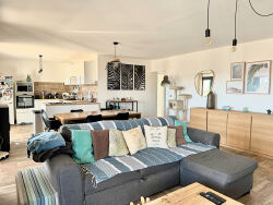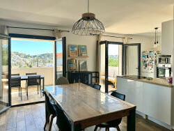 COUP DE COEUR DE NOTRE AGENCE :Situé à Six-Fours-Les-Plages, cet appartement de 90m2 offre un véritable havre de paix avec sa magnifique terrasse et son jardin privatif, ainsi que deux places de stationnement privées.Idéalement niché en fond d'impasse entre Les Playes et l'entrée du centre-ville, cette résidence est à moins de 10 minutes des plages et à proximité de toutes les commodités et centres commerciaux. L'accès rapide aux autoroutes Nice - Marseille évite les embouteillages du coeur de la ville.Ce bien rare sur le secteur se compose comme suit : une entrée spacieuse, une grande buanderie, un grand double séjour lumineux avec salon et salle à manger, climatisé et équipé d'une cuisine ouverte aménagée avec goût. Cette pièce à vivre de 44m2 dispose de trois belles ouvertures qui donnent sur une terrasse de 20m2, parfaite pour les repas en extérieur. Le salon de jardin invite à recevoir vos convives, qui pourront profiter de la plancha et d'une belle table pour partager des moments agréables.La partie nuit se compose de deux chambres avec rangements, d'un WC indépendant et d'une salle de bains moderne équipée d'une baignoire et d'une douche à l'italienne. Une double vasque ajoute une touche de praticité à cette salle de bains élégante. Possibilité de création d'une 3ème chambre en modifiant légèrement le plan. Ce cadre de vie idyllique bénéficie d'une rénovation récente. La petite copropriété, est composée de seulement 3 lots d'habitations, garantissant ainsi un environnement paisible et chaleureux.