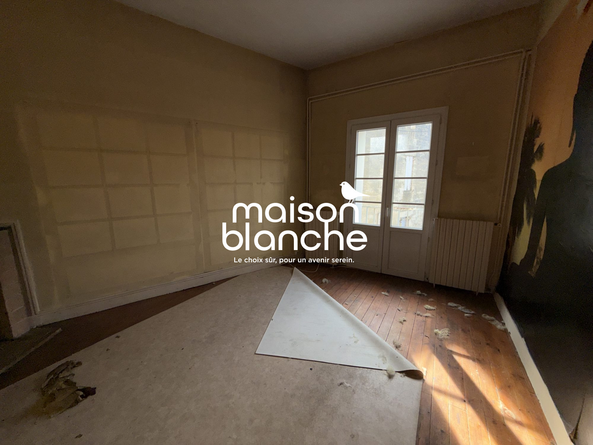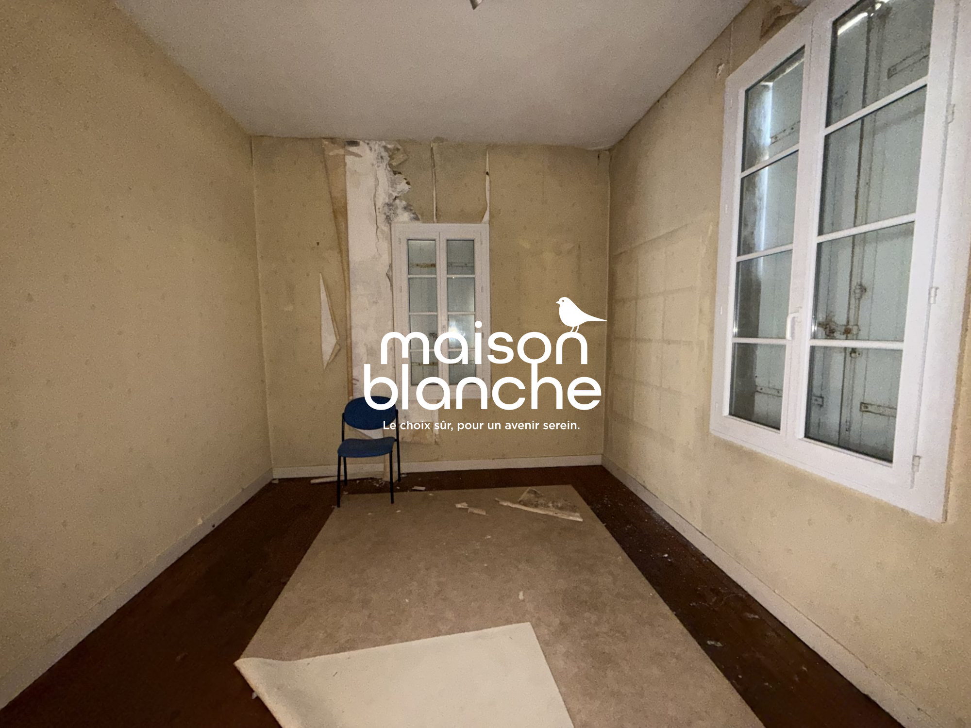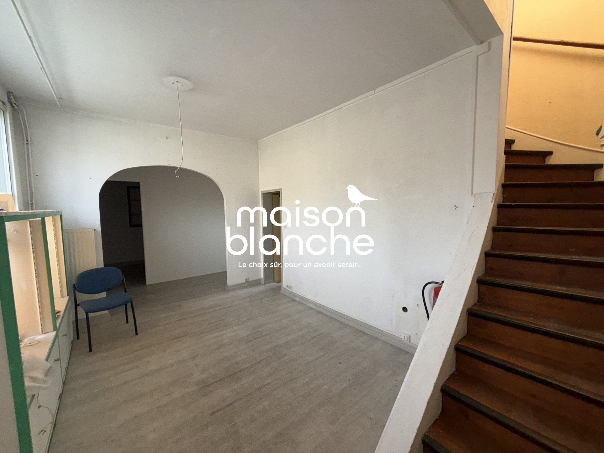 Idéalement situéeA proximité de la gare et du centre villeMaison pierre composée d'une entrée, d'une cuisine ouverte sur un séjour, 3 chambres, un bureau, une salle de bain et un WC.Plateau au deuxième étage de 35 m² env. à aménager.Grand garage.Jardin