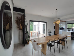 Une occasion exceptionnelle à saisir ! À seulement 5 minutes du prestigieux Golf international de Pont Royal, dans le charmant hameau de Cazan à Vernègues, votre agence ERA Immobilier vous présente en exclusivité cette magnifique maison contemporaine qui offre un cadre de vie en parfaite harmonie avec la nature.Construite en 2020, cette maison développe 138 m² de confort moderne dans un environnement privilégié. Elle s'accompagne d'une piscine type couloir de nage de 11,5 m x 3 m, d'un terrain de pétanque et d'une terrasse intimiste de 45 m², le tout implanté sur un terrain de plus de 1000 m² exposé Sud-Ouest, idéal pour profiter pleinement des extérieurs.Dès l'entrée, les volumes généreux et la luminosité séduisent immédiatement. L'espace de vie se compose d'un premier volume d'environ 50 m² accueillant la salle à manger et une cuisine ouverte entièrement équipée avec îlot central, prolongé par un salon cosy de 20 m². Les grandes baies vitrées à galandage offrent une belle ouverture sur l'extérieur et baignent la pièce de lumière tout au long de la journée.La partie nuit propose trois chambres, dont une suite parentale avec salle d'eau privative, une seconde salle d'eau, des toilettes indépendantes ainsi qu'une buanderie fonctionnelle.Côté prestations, tout a été pensé pour un confort optimal : climatisation gainable dans chaque pièce, menuiseries aluminium noir double vitrage, volets roulants électriques centralisés, arrosage automatique et portail motorisé.Enfin, la propriété offre un fort potentiel d'évolution, avec la possibilité d'agrandir la surface habitable d'environ 100 m² supplémentaires, permettant la création d'un garage ou d'une extension selon vos projets.Toutes les commodités, y compris les commerces, les écoles maternelles et primaires, ainsi qu'un centre aéré, se trouvent à proximité immédiate. De plus, la position stratégique de cette propriété est un atout, avec un accès rapide à l'aéroport de Marseille en seulement 35 minutes, Paris en 3h10 depuis la Gare d'Aix-en-Provence, Aix-en-Provence en 30 minutes, Salon-de-Provence en 10 minutes, Marseille et Avignon en moins de 40 minutes en voiture.Ne laissez pas passer cette opportunité, contactez dès maintenant notre agence ERA ACTION IMMOBILIER 2 Cazan pour obtenir de plus amples informations et profiter de notre service d'estimation gratuit. Laissez-nous prendre en charge tous les détails pour faciliter votre projet immobilier !