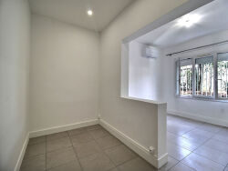 Montpellier / Les Aiguerelles, Avenue du Pont-TrinquâtAu rez-de-chaussée d'une maison des années 1970 avec une véranda lumineuse, un bel appartement de type T3 de 85.70 entièrement rénové et totalement climatisé.Jardin privatif d'environ 200 m² avec deux places de stationnement.L'appartement se compose d'une entrée avec placard, d'un séjour de 30 m², d'une cuisine aménagée et équipée indépendante, d'une chambre avec espace dressing / bureau, d'une chambre avec une salle d'eau attenante, d'une seconde salle d'eau et W.C. séparés.Disponible dès maintenant !