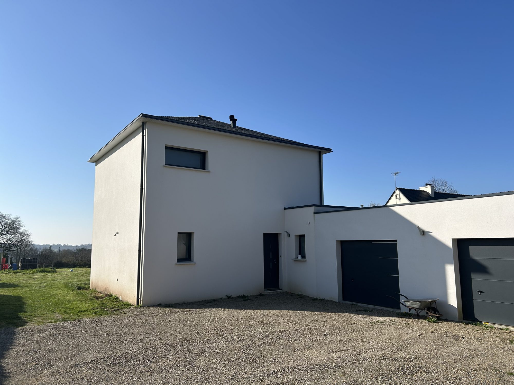 En exclusivité, nous vous proposons à l'achat cette grande propriété idéalement située au calme d'un petit bourg proche de LANDIVISIAU à PLOUGAR - 29440.Cet ensemble immobilier se compose de : **** Une grande maison des années 1900 entièrement rénovée par des professionnels et proposant 159 m² habitables répartis comme suit:Au rez-de-chaussée: une grande pièce de vie salon-séjour-cuisine ouverte de 65 m² exposée sud et ouverte sur la grande terrasse double, un cellier - buanderie, un porche extérieur et un wc séparé avec lave- mains.Au premier étage: trois chambres dont une avec dressing et accès à un toit terrasse de 44 m² exposé sud, une salle de bains avec douche et baignoire, un palier - couloir et un wc séparé.le deuxième étage est consacré entièrement à l'espace parental avec une grande chambre très lumineuse, un espace dressing et une salle d'eau avec le wc.**** Un hangar entièrement neuf de 150 m² + mezzanine de 50 m², très bien équipé, ( dalle béton, plaques translucides, porte sectionnelle motorisée, porte piétonne, prises de courant et éclairage ...) il fera le bonheur des collectionneurs, bricoleurs, jardiniers ou alors pour une activité professionnelle avec son accès un peu à l'écart de la maison.Le tout est idéalement bien implanté sur une parcelle plane de 2138 m² entièrement close avec portillon d'accès et portail motorisé donnant accès à la fois au hangar avec sa cour et à la maison par la terrasse.Les accès vers MORLAIX ou BREST sont très rapides ( aéroport à 24 minutes) ainsi que la gare de Landivisiau qui est à 10 minutes environ.Les belles plages du nord Finistère de PLOUESCAT, CLEDER, SANTEC, CARANTEC ou ROSCOFF sont toutes à quelques kilomètres ...Quelques finitions sont à prévoir pour mettre à votre gout mais aucun travaux d'importance ne sera nécessaire.La visite virtuelle est disponible sur demande par mail .