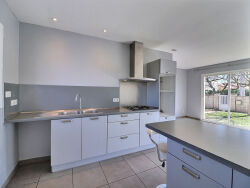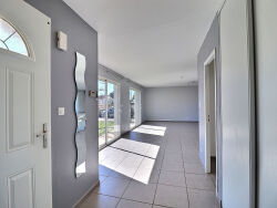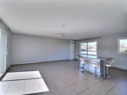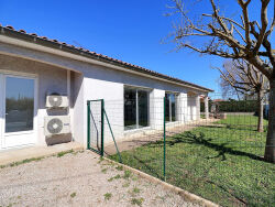 Maison T4 de plain-pied à Lescure d'Albigeois sur un terrain clos, au calme. L'entrée avec placard dessert une belle pièce à vivre lumineuse avec coin salon et cuisine ouverte équipée (plaques de cuisson, hotte aspirante). Le coin nuit compte 3 chambres, un grand bureau. Nombreux rangements. Climatisation. Libre mi-avril.