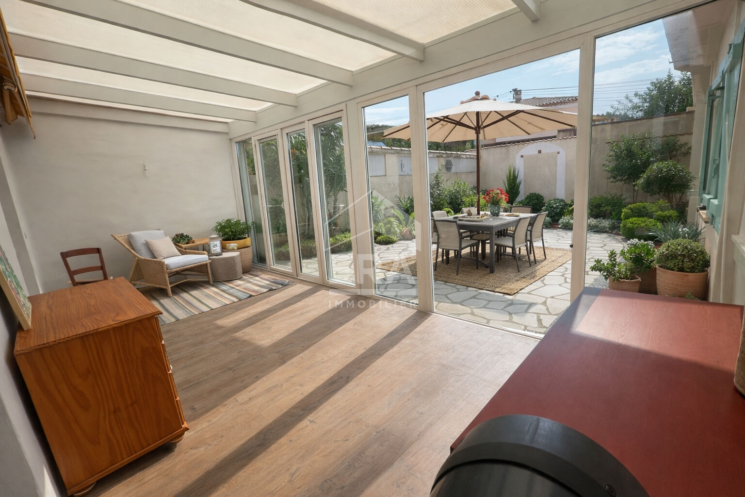LES PENNES-MIRABEAU ? Maison familiale de plain-pied avec piscine, studio indépendant et cadre privilégié.Dans un secteur recherché et au calme absolu des Les Pennes-Mirabeau, votre agence ERA Mirabeau vous propose cette superbe maison de plain-pied d'environ 137 m² habitables, complétée par un sous-sol aménagé de 60 m², le tout sur une belle parcelle arborée de 1033 m².-Un espace de vie lumineux et ouvert sur la natureVous serez immédiatement séduit par une pièce de vie spacieuse de 56 m² comprenant salon, salle à manger et cuisine, offrant une magnifique vue dégagée sur le jardin et les collines environnantes. Un cellier et un WC complètent cet espace convivial.-Un espace nuit confortable et bien penséLa maison propose :3 belles chambres (entre 11 et 13 m²)Une suite parentale avec salle d'eauUn bureau idéal pour le télétravailUne salle de bain et un WC séparé-Toutes les pièces disposent de grands rangements intégrésUn sous-sol aménagé aux multiples possibilitésParfait pour accueillir famille, amis ou créer un espace indépendant :5? chambreGrande pièce de vie de 36 m²Salle d'eau, dressingAtelierGrand garage de près de 32 m²Un studio indépendant climatisé de 20 m² vient compléter ce bien (idéal location ou profession libérale)-Extérieurs d'exception :Jardin clos, arboré et sans vis-à-vis, avec accès direct à la pinèdePiscine chauffée (panneaux solaires) exposée sud-ouestBelle terrasse en bois pour profiter des beaux jours !-Une maison coup de coeur, idéale pour une famille en quête de nature, confort et sérénité, tout en restant proche des axes et commodités.Contactez rapidement votre agence ERA MIRABEAU au 04.65.29.02.95 pour plus de renseignements !