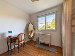 Maison individuelle de 102 m2 édifiée sur un terrain clos de 849 m2. Elle se compose au rez-de-chaussée d'une entrée, d'un salon et d'une salle à manger avec un poêle, une cuisine indépendante aménagée et équipée, trois chambres et une salle de douche. À l'étage, une chambre en mezzanine avec placards et une salle d'eau. La maison dispose d'un sous-sol total et d'une terrasse de 20 m2 exposée Sud. Située proche des commerces.