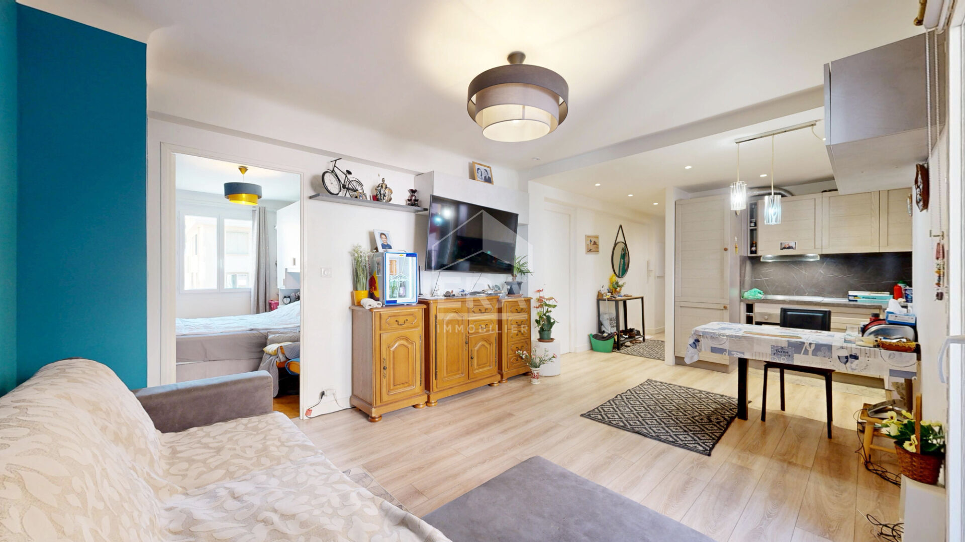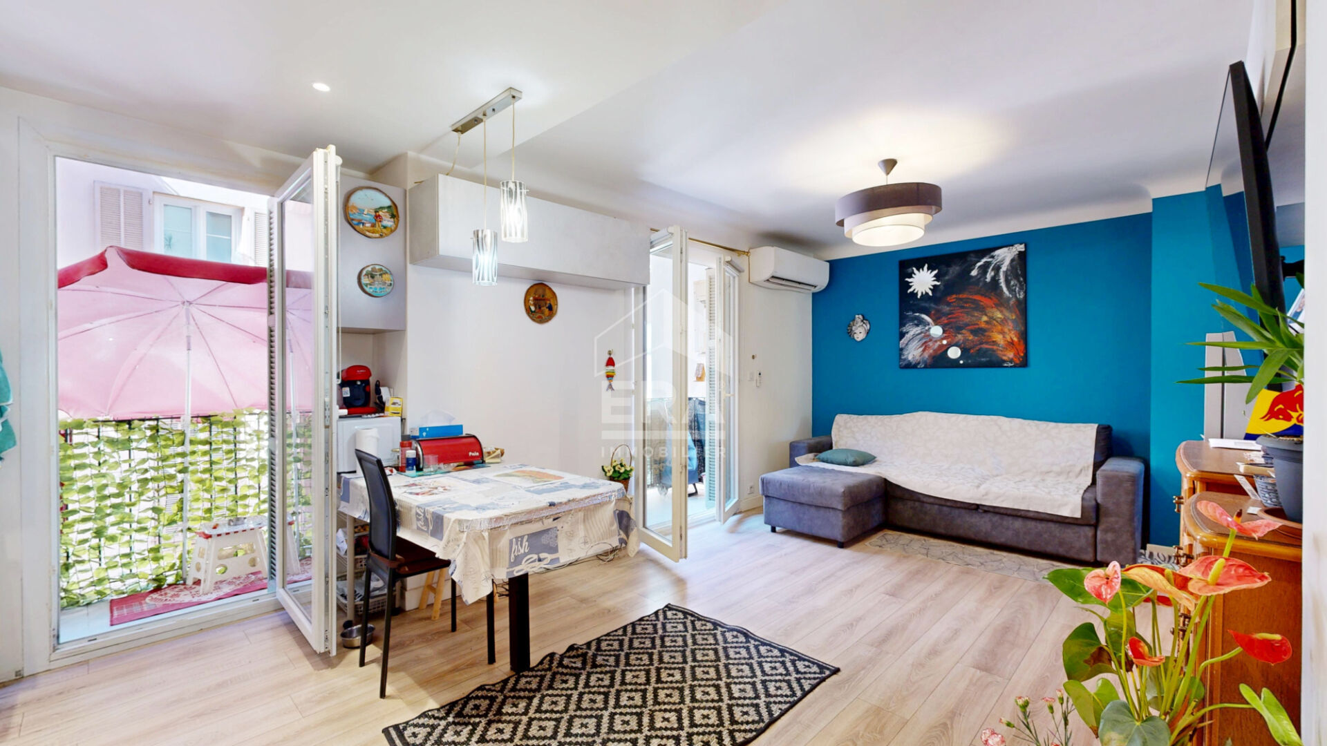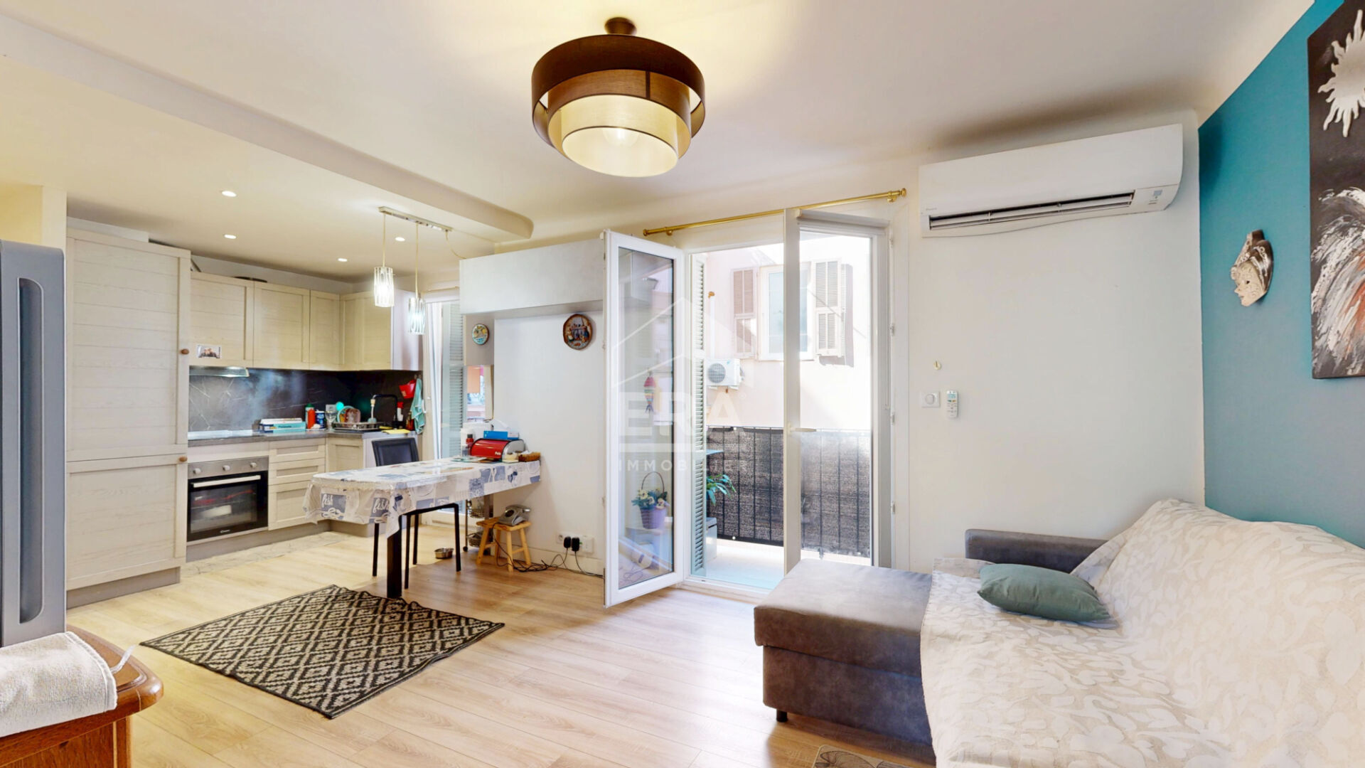 COEUR DE MOUGINS - Emplacement recherché à proximité immédiate des commerces, du cinéma et de toutes les commodités, votre agence ERA JT2 immobilier a le plaisir de vous faire découvrir ce superbe 2 pièces de 39 m² (31,82 m² loi Carrez) entièrement rénové avec goût.L'appartement se compose : d'une entrée avec placard, d'un toilette indépendant, d'une salle de douche moderne, d'un espace de vie lumineux avec cuisine ouverte, prolongé par une loggia idéale pour vos moments de détente, d'une chambre avec placard intégré.Une cave complète ce bien pour un rangement pratique.Pour le stationnement, la location d'une place au parking souterrain est possible : 80 ?/mois ou 120 ?/mois pour véhicule électrique.Un appartement clé en main, au calme et à deux pas de toutes les animations, parfait pour un premier achat ou un investissement locatif.