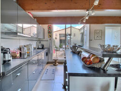 NOUVEAUTE en centre ville de Mauguio !Appartement entièrement rénové par architecte, offrant de beaux volumes et une atmosphère contemporaine.S'articulant autour d'un Patio de 15 m², le bien séduit par son séjour spectaculaire avec belle hauteur sous plafond, baigné de lumière et ouvert sur une mezzanine élégante qui apporte caractère et fonctionnalité.L'appartement développe 131 m² Carrez (environ 150 m² habitables) et propose un vaste espace de vie aux prestations soignées, 3 chambres confortables, dont une suite avec salle de bains, une seconde salle d'eau indépendantesLe patio intimiste d'environ 15 m², véritable prolongement de l'espace de vieLa rénovation réalisée par architecte met en valeur les volumes, les matériaux et la circulation des espaces, offrant un bien clé en main au style contemporain.Un appartement idéal pour une résidence principale de standing, alliant cachet, modernité et espaces extérieurs en coeur de ville.