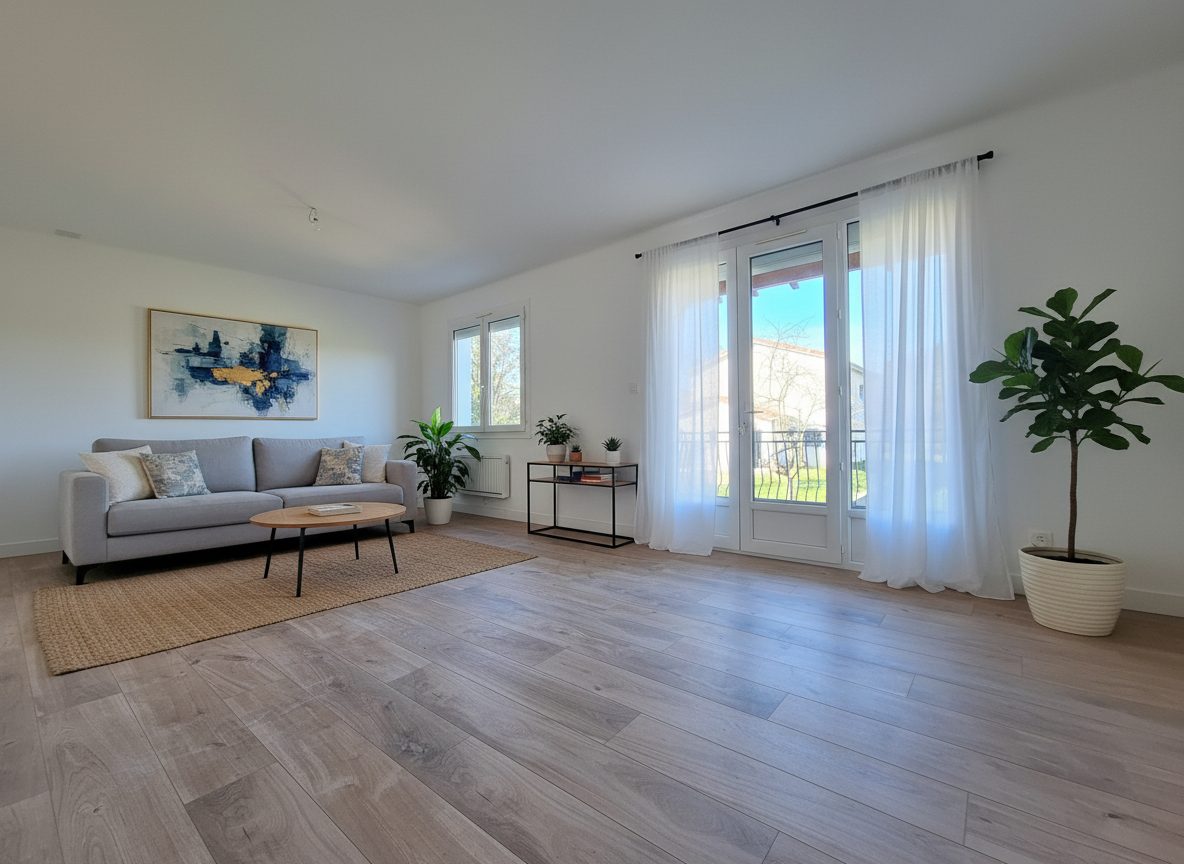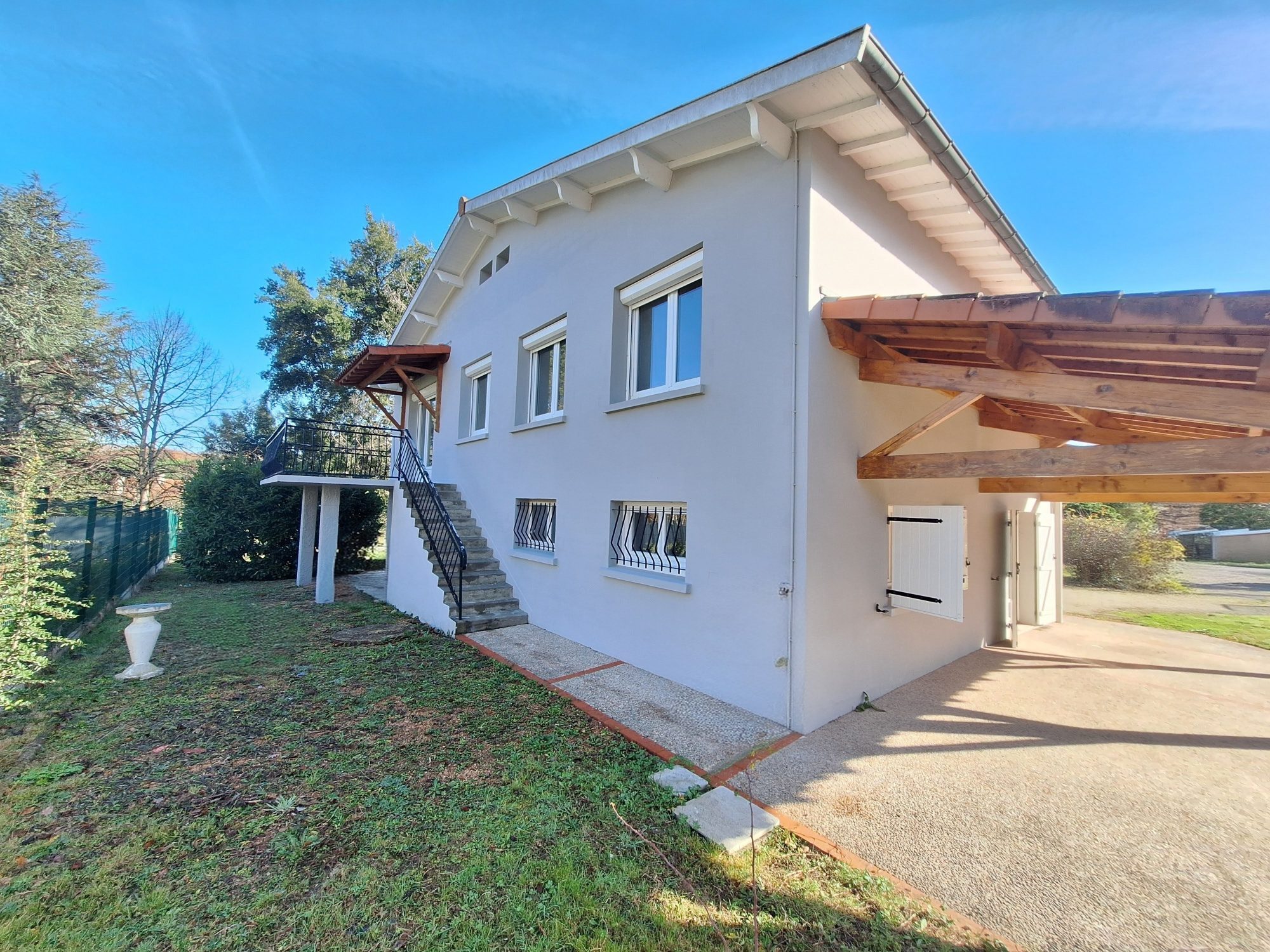 Bruguières, Maison plain-pied 104 m² avec piscine, panneaux solaires et etrrain paysagé.Située au calme d'une impasse, dans un environnement paisible, cette maison de plain-pied offre un cadre de vie confortable, économe en énergie et sans travaux.Une maison confortable et bien équipée!L'entrée ouvre sur une belle pièce de vie lumineuse avec cuisine rénovée semi-ouverte, agrémentée d'une cheminée avec insert et d'une pompe à chaleur réversible assurant chauffage et climatisation. Carrelage neuf, porte d'entrée et porte fenêtre du séjour en aluminium.L'espace nuit comprend trois chambres dont deux aux surfaces généreuses de 15 m² et 18 m², ainsi qu'une salle d'eau rénovée et un grand cellier fonctionnel.Performance énergétique et économies d'énergie!La maison bénéficie d'une installation récente de panneaux photovoltaïques de 6 kWc avec autoconsommation et revente du surplus, permettant de réduire significativement les dépenses énergétiques. Classe énergétique C.Un extérieur soigné et agréable!Implantée sur une parcelle paysagée d'environ 600 m², la propriété propose:- piscine 4X8 m (revêtement fibre et gelcoat) sécurisée clôturée- une terrasse couverte exposée Sud-Ouest- deux portails motorisés- plusieurs stationnements privatifsLe jardin, aménagé avec soin, offre un espace extérieur esthétique et facile d'entretien.Emplacement appéciable.Proche des commerces, des transports et à quelques minutes des écoles, tout en bénéficiant d'un environnement calme et privilégié!Venez visiter!