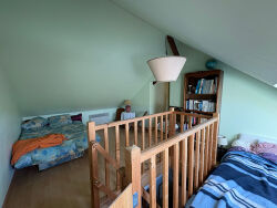 MAISON MITOYENNE DE 91m² Era Immobilier vous présente cette maison de 91m² habitables, mitoyenne par un coté, située dans un environnement calme avec une vue dégagée sur la campagne, à 5 minutes des commerces.L'entrée offre sur la cuisine de 9.8m² ,aménagée et équipée. Une pièce de vie traversante de 28m² équipée d'une cheminée avec insert. Ce niveau comprend également un WC séparé avec lave-main et fenêtre. Le dégagement mène à deux belles chambres de plain-pied : 15m² et 9.75m² Une salle d'eau de 4m² avec double vasques, sèche serviette.A l'étage, un espace nuit en mezzanine de 9m², un bureau et une deuxième salle d'eau avec WC.Le bien dispose d'un sous sol-sol total comprenant partie buanderie, espace de stockage, partie chaufferie et garage avec portes motorisée et double portes manuelle. Beau jardin clos et arboré avec portail électrique.Fenêtre en double vitrage et volets roulants. Chauffage central au fuel et convecteurs électrique à l'étage.Prix : 111 000 ? Honoraires charge vendeurs.Consulter nos tarifsMandat : 5207Classe énergie : F