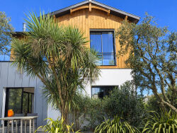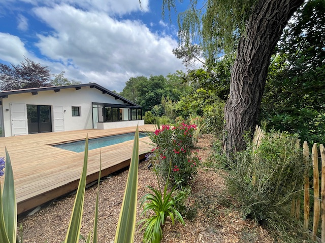 À vendre, superbe maison neuve de grand standing, référence 212, située à La Teste de Buch, exposée Ouest, dans un environnement calme et sans vis-à-vis. Cette maison de 120 m² habitables sur un terrain de 700 m² offre 4 pièces dont 3 chambres, une cuisine américaine aménagée et équipée, un séjour lumineux exposé Sud-Ouest, une salle de bain, une salle d'eau, et 2 WC. Le chauffage au sol et la climatisation réversible garantissent un confort optimal toute l'année. Construite en 2019 avec des matériaux de qualité, elle dispose de fenêtres en aluminium double vitrage, volets roulants électriques, portail électrique, alarme, et un système d'assainissement tout à l'égout. À l'extérieur, profitez de 2 terrasses, 2 balcons, une piscine, un garage, une place de parking extérieure. Située à seulement 5 minutes des commerces, écoles (Collège Henri Dheurle), gare, et arrêt de bus, cette maison allie prestige, confort et emplacement idéal. Prix : 1 160 000 ?. Contactez l'agence ERA LA CABANE DU MOULLEAU pour une visite.