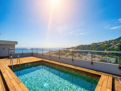 A vendre dans votre agence ERA Immobilier Bastia : Nichée à quelques centaines de mètres seulement de la ville qu'elle surplombe, dans un cadre intime et réservé offrant une vue dégagée a 180° des montagnes à la mer , cette villa de toit est un bien d'exception aux volumes hors normes et aux prestations uniques.Formant l'intégralité du dernier étage d'une des résidences modernes les plus recherchées du secteur, l'appartement offre plus de 340 mètres carrés de surface au sol, incluant 240 mètres carrés habitables et près de 100 mètres carrés d'extérieur répartis entre les balcons, salons, cuisine d'été et piscine de toit.L'espace de vie principal, traversant et baigné de lumière, comprend l'entrée, avec de grands rangements pour les invités, un séjour salon-salle à manger doté d'une magnifique cheminée, et une cuisine indépendante parée d'une large ouverture vitrée sur l'espace de vie.Depuis cet espace central de plus de 80 mètres carrés, l'appartement se développe sur deux ailes :Une première partie nuit côté Est est composée d'un dégagement, de deux chambres avec salles de bain privatives et dressings, d'un bureau, d'une buanderie et d'un toilette indépendant. Dans l'aile Ouest, une chambre d'amis avec salle de bain indépendante, puis un large vestibule / dressing précédent la suite parentale, qui dispose d'une salle de bain avec douche et baignoire, d'un WC indépendant et d'un accès direct à la terrasse de toit et à la piscine.À l'extérieur, c'est littéralement près de 100 m² de balcon filant, salon d'été, cuisine et une douche d'été, qui bordent l'intégralité de l'appartement d'Est en Ouest jusqu'à la terrasse principale disposant d'une magnifique piscine au sel.L'appartement propose enfin un garage et une cave par lesquels on accède directement à l'intérieur de l'immeuble (un garage et une cave supplémentaires sont disponibles en option).Points forts : Emplacement privilégié, vue incroyable, liste exhaustive de prestations haut de gamme. Associé à une distribution d'architecte parfaitement pensée, mariant à merveille les espaces intérieurs et extérieurs pour faire de cet appartement un bien unique.ERA Immobilier Bastia - Contact Informations & Conseils : Paul Albertini - 06.16.17.87.45