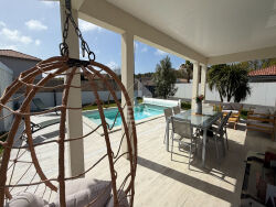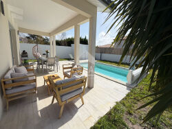 Située à La Teste-de-Buch, dans un environnement recherché du Bassin d'Arcachon, découvrez cette agréable maison contemporaine de plain-pied, construite en 2016.Implantée sur un terrain de 800 m² environ entièrement clôturé et maçonné, cette maison soignée et parfaitement entretenue offre des prestations de qualité et un confort moderne.Dès l'entrée, vous serez séduit par une belle pièce de vie lumineuse composée d'un salon-séjour spacieux avec cuisine ouverte, aménagée et équipée (cuisine Arthur Bonnet), idéale pour partager des moments conviviaux en famille ou entre amis.L'espace nuit se compose : - d'un dégagement desservant trois chambres confortables, - d'une salle d'eau moderne, - d'un WC indépendant.Côté extérieur, tout a été pensé pour le confort et la praticité : - Allée en enrobé, - Double garage, - Piscine avec volet roulant électrique, - Jardin paysager avec arrosage automatique, - Puits foré, - Terrain entièrement clos garantissant intimité et sécurité.Les prestations techniques viennent compléter l'ensemble : - Chauffage au sol par pompe à chaleur, - Ballon thermodynamique, - Construction récente offrant une excellente performance énergétique.Cette maison clé en main, alliant modernité, confort et fonctionnalité, constitue une opportunité rare sur le secteur de La Teste-de-Buch.Un bien idéal pour une résidence principale comme pour une maison de villégiature sur le Bassin. À découvrir sans tarder.Contactez votre agence immobilière ERA SUD Bassin la Teste de Buch au 05 57 63 34 98.La présente annonce immobilière a été rédigée sous la responsabilité éditoriale de Mme Caroline BODEREAU - agent commercial immatriculé au RSAC de Bordeaux sous le numéro 837 855 915 00018.