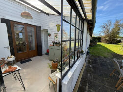 Laissez-vous séduire par le charme de l'ancien allié au confort moderne avec cette magnifique longère rénovée datant de 1830, située dans un environnement calme et verdoyant, à proximité du collège.Dès l'entrée, vous découvrirez un vaste hall avec placard menant à une belle pièce de vie conviviale. La cuisine aménagée et équipée s'ouvre sur la salle à manger et donne accès à une véranda ainsi qu'à une terrasse, idéales pour profiter des beaux jours.Le séjour cathédrale de 40 m², chaleureux et lumineux, est sublimé par une cheminée équipée d'un poêle à bois. Le rez-de-chaussée comprend également deux chambres, un bureau, une salle de bains avec douche et baignoire, un WC séparé, ainsi qu'un cabinet de toilette avec WC et dressing.Une pièce indépendante de 18 m² avec point d'eau et entrée séparée offre de nombreuses possibilités : profession libérale, atelier ou espace indépendant.À l'étage, vous trouverez une mezzanine, un palier et deux chambres supplémentaires.La propriété dispose également de nombreux espaces annexes : buanderie, atelier d'artiste, four à pain rénové et fonctionnel, grange de 30 m² et garage de 25 m².À l'extérieur, vous profiterez d'une cour et d'un magnifique jardin clos et arboré de 1 673 m², sans vis-à-vis, avec deux terrasses dont une couverte.Matériaux de qualité (pierres apparentes, parquets), double vitrage bois, chauffage électrique et assainissement individuel complètent ce bien plein de caractère.Une propriété rare, idéale pour les amoureux de l'authenticité et des grands espaces.