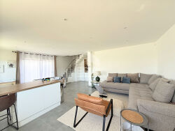 RARE A LA VENTE - CAEN SUD. Maison familiale et récente de 2023 comprenant : entrée avec rangements, séjour double avec cuisine ouverte aménagée et équipée de plus de 40m2, chambre de plain pied avec salle d'eau attenante.à l'étage 3 chambres dont une avec grand dressing, salle de bains. Garage buanderie.Terrain de 350m2 clos.PARFAIT ETAT.