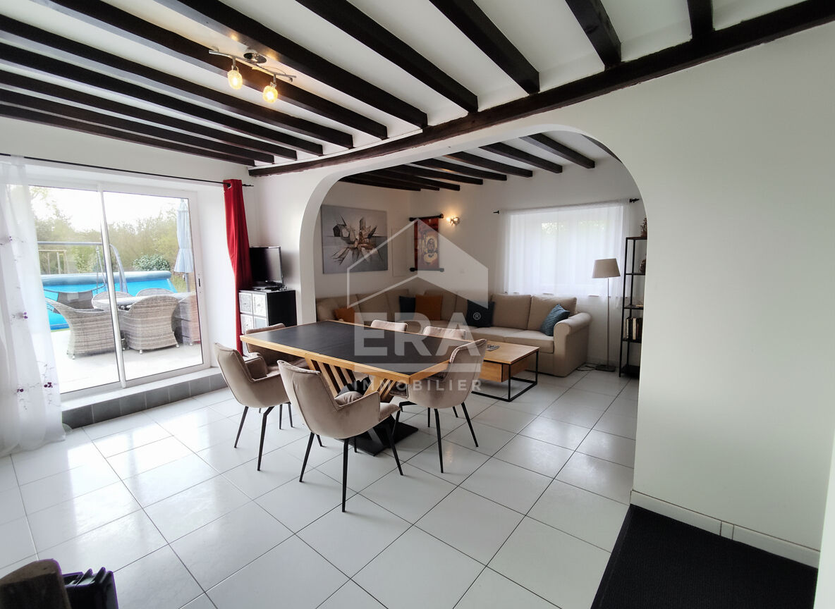 Très belle Longère située à 15 mn Ouest de Chartres, comprenant: une entrée, une cuisine aménagée équipée ouverte sur séjour-salon avec cheminée d'environ 40 m², 1 chambre, 1 buanderie, 1wc. A l'étage: pièce palière, 3 chambres, salle d'eau avec wc. A l'extérieur: Un grand jardin d'environ 984m² comprenant une très belle terrasse avec petite piscine encastrée, un garage, un atelier et un local pour la pompe à chaleur.