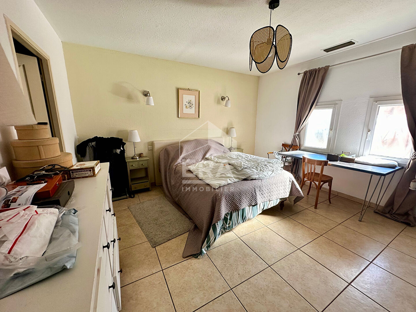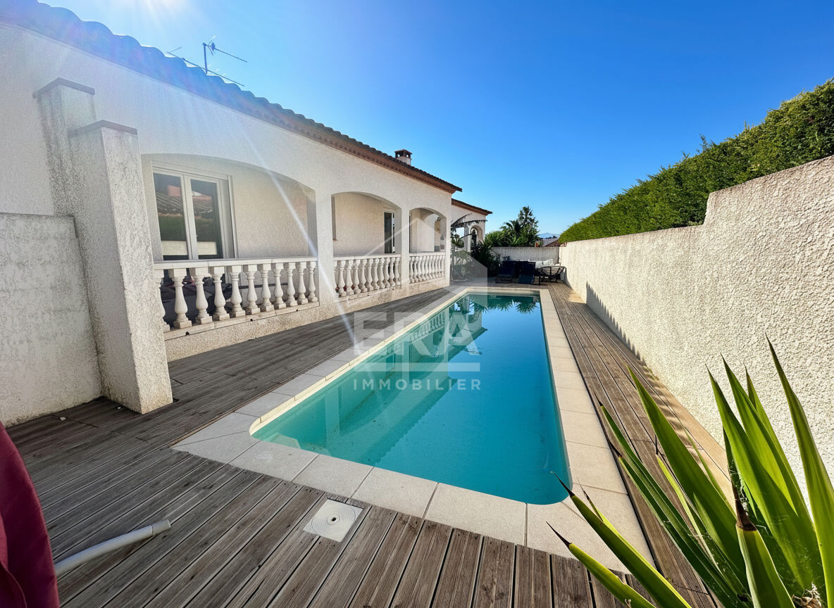 Découvrez cette magnifique maison plain-pied de 180 m², située dans le secteur prisé du Parc Ducup à Perpignan au Mas Bedos. Construite en 2005, cette propriété de très bon standing offre un cadre de vie calme et une vue dégagée sans vis-à-vis sur un terrain de 919 m². La maison principale se compose d'une belle entrée avec placards Le séjour lumineux de 44 m² exposé plein sud s'ouvre sur une terrasse, parfaite pour profiter des beaux jours. Le chauffage par air pulsé avec climatisation réversible, les fenêtres en PVC double vitrage, les volets roulants électriques, l'aspiration centralisée , l'alarme et le portail électrique ajoutent à la sécurité et au confort de cette maison. À l'extérieur, vous apprécierez la piscine sans vis à vis , le garage double et les 6 places de parking. Cerise sur le gâteau : elle dispose en plus d'un appartement Type 2 bis avec son entrée indépendante, parfait pour recevoir de la famille ou y faire un investissement locatif (loué auparavant 640?/mois).La localisation est idéale, proche de nombreux établissements scolaires (École maternelle Ludovic Massé, École primaire Jean Jaurès, Collège François Mitterrand, Institut méditerranéen d'informatique et robotique, Purple Campus Perpignan), ainsi que de commerces et services. Ce bien, référencé 1642 chez ERA IMMOBILIER CHATEAU ROUSSILLON, est une opportunité rare sur le marché. Ne tardez pas à visiter cette maison de prestige qui allie confort, espace et emplacement de choix.