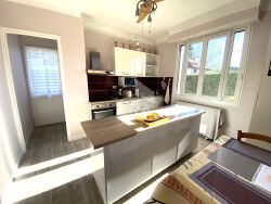 ERA SECTION IMMOBILIER vous propose à la vente cette maison des années 60 en bon état, située dans le quartier calme de Pau Nord. D'une surface habitable de 100 m², elle comprend 5 pièces dont 4 chambres, avec 2 chambres au rez-de-chaussée. La cuisine ouverte, aménagée et équipée s'ouvre sur un séjour lumineux exposé sud-est. Le chauffage et l'eau chaude sont assurés par une pompe à chaleur air/eau. La maison dispose d'une salle d'eau, de 2 WC, de fenêtres en PVC double vitrage et de volets roulants électriques. Le terrain de 609 m² comprend un garage fermé, un stationnement extérieur couvert pour 2 véhicules, une cave et un sous-sol. La climatisation et un portail électrique complètent les équipements.Cette maison est idéalement située à proximité des écoles Pierre et Marie Curie (maternelle et primaire). Vous trouverez également à proximité divers commerces, restaurants, parcs et services de santé. Ce bien confortable et fonctionnel, est parfait pour une famille cherchant un cadre de vie agréable à Pau.Contactez l'agence, ou la conseillère responsable de ce mandat pour organiser une visite !Marie BERGES : 0687465052RSAC: 910983634 EIAgence ERA - 13 avenue du Général de Gaulle à PAU 64000.Tél. 05.59.90.18.90.