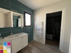 À Sérignan, maison récente offrant de belles prestations. Elle se compose d'un spacieux séjour avec cuisine de 43,60 m², de trois chambres dont une suite parentale avec salle d'eau et dressing, d'une seconde salle d'eau, d'un WC indépendant ainsi que d'un cellier. Vous profiterez d'une terrasse de 26,50 m² sur une parcelle de 408 m². Un garage complète le bien. Climatisation. DPE : A. Loyer : 1 300 charges comprises (1 280 + 20 de provisions sur charges avec régularisation annuelle). Honoraires locataire : 597,30 , dont 162,90 pour l'état des lieux. Dossier soumis à étude de solvabilité.