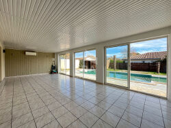 NOUVEAUTÉ dans votre agence ERA CAP40 Immobilier !Nous vous présentons, sur la commune de Laluque (40465), cette maison de plain-pied construite en 2008 et offrant 151 m² habitables, dans un environnement calme et agréable.La maison dispose d'une spacieuse pièce de vie, composée d'un salon-séjour lumineux ouvert sur une cuisine aménagée et équipée. L'espace nuit comprend quatre chambres, une salle de bains avec douche, ainsi qu'un WC indépendant. Une véranda vient compléter l'ensemble et offre un prolongement agréable pour profiter de l'extérieur tout au long de l'année.Côté prestations, la maison est équipée de menuiseries PVC double vitrage, de volets roulants (électriques et manuels), d'un chauffage électrique individuel, d'une climatisation réversible, d'une isolation par le toit et les murs, de l'assainissement tout à l'égout, ainsi que d'un portail électrique pour plus de confort au quotidien.À l'extérieur, le terrain de 956 m², entièrement clos, offre un cadre verdoyant et sécurisé, avec une piscine de 8 x 4 m au chlore, idéale pour profiter des beaux jours.L'environnement est paisible tout en restant proche des écoles, commerces et transports, accessibles en quelques minutes seulement.Cette maison représente une belle opportunité pour ceux qui recherchent un bien récent, bien entretenu et idéalement situé.Pour tout renseignement ou pour organiser une visite, contactez-nous dès aujourd'hui !