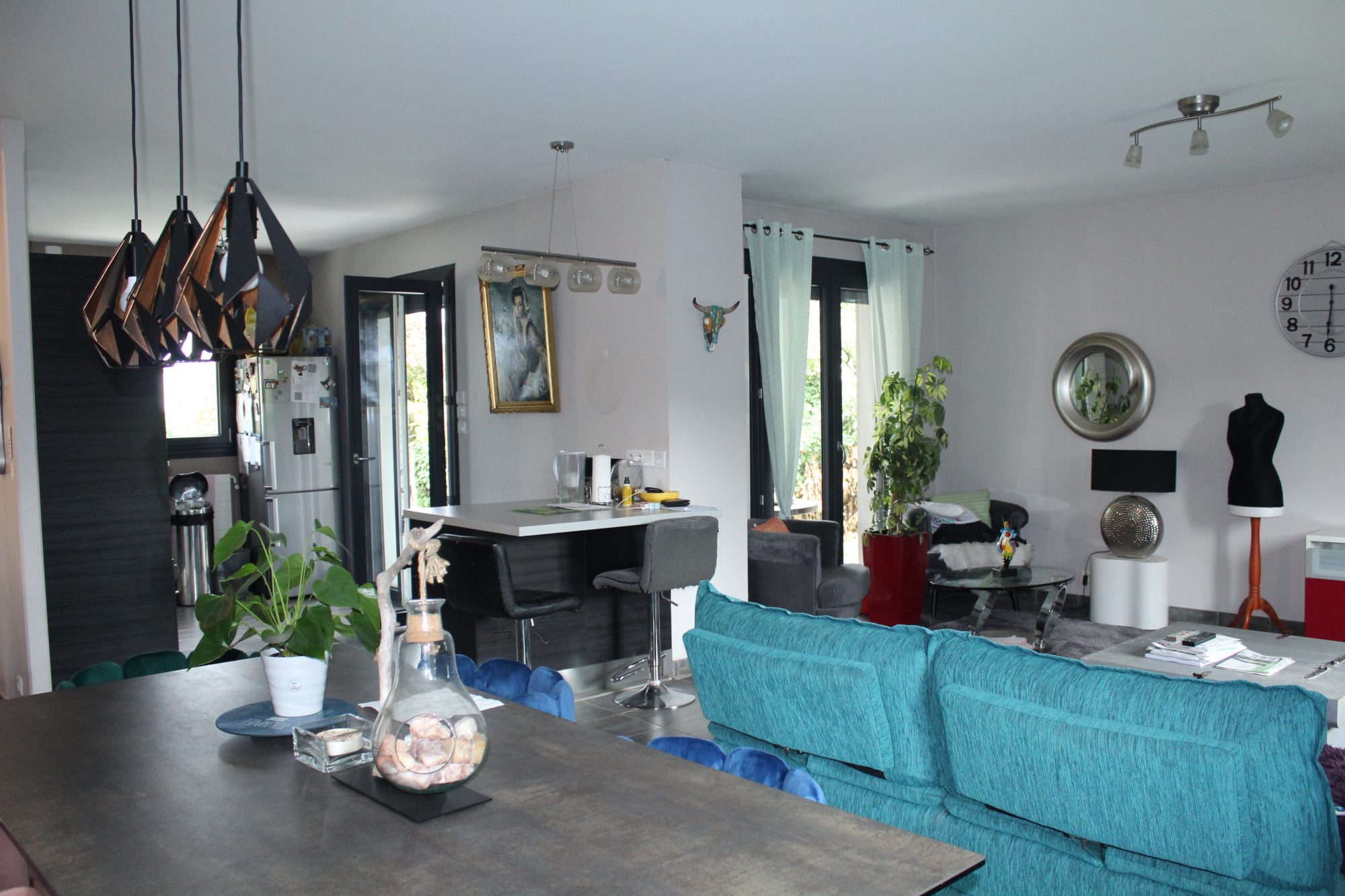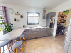 En exclusivité à Ambutrix, charmant village du Bugey situé à 5 kms d'Ambérieu, Christelle MACRI vous présente cette ravissante maison contemporaine de 120 m2 qui dispose d'un terrain constructible de 957 m2 au calme et sans vis-à-vis. Ambutrix est une commune à la fois dynamique par ses associations, son école, sa proximité avec la gare d'Ambérieu et des axes routiers et invite aussi à la flânerie et la contemplation : de jolies maisons de pierre, datant pour certaines du moyen âge, habillent les ruelles d'une touche d'histoire. On est vite en pleine nature où de beaux sentiers mènent au calme !La maison se compose en rez-de-chaussée d'une entrée desservant un séjour lumineux avec cuisine ouverte aménagée et équipée. On accède à la terrasse avec pergola depuis les baies vitrées procurant un sentiment d'espace et de bien-être ! Un cellier avec espace buanderie permet d'accéder au grand garage avec porte sectionnelle motorisée et porte de service. Nombreux rangements. Egalement à ce niveau, des toilettes séparées et une agréable suite parentale avec salle d'eau. A l'étage, trois chambres, une belle salle de bains. Le terrain est plat. Une partie (345 m2) est détachable et déjà viabilisée si l'on souhaite construire. Chauffage au sol électrique + radiateurs. Poêle à granules de 2023.ECS cumulus électrique. Fenêtres DV PVC et alu et baie vitrée à galandage.Volets alu mixte motorisés et manuels. Tuiles en terres cuites. Isolation des combles en projeté. VMC.Fibre.Tout-à-l'égout. Cette belle maison familiale moderne, très bien entretenue et agencée n'attend plus que vous ! N'hésitez pas à m'appeler pour visiter : 00648934829Pour tous renseignements ou demandes de visite, Christelle MACRITél : 00648934829RSAC 995 366 572Prix TTC honoraires inclus. Honoraires charge vendeur.Les informations sur les risques auxquels ce bien est exposé sont disponibles sur le site Géorisques : www.georisques.gouv.fr
