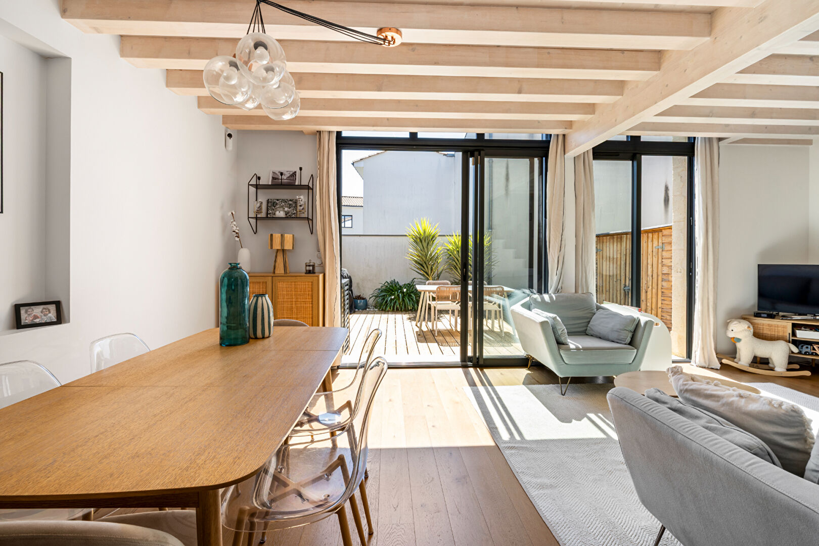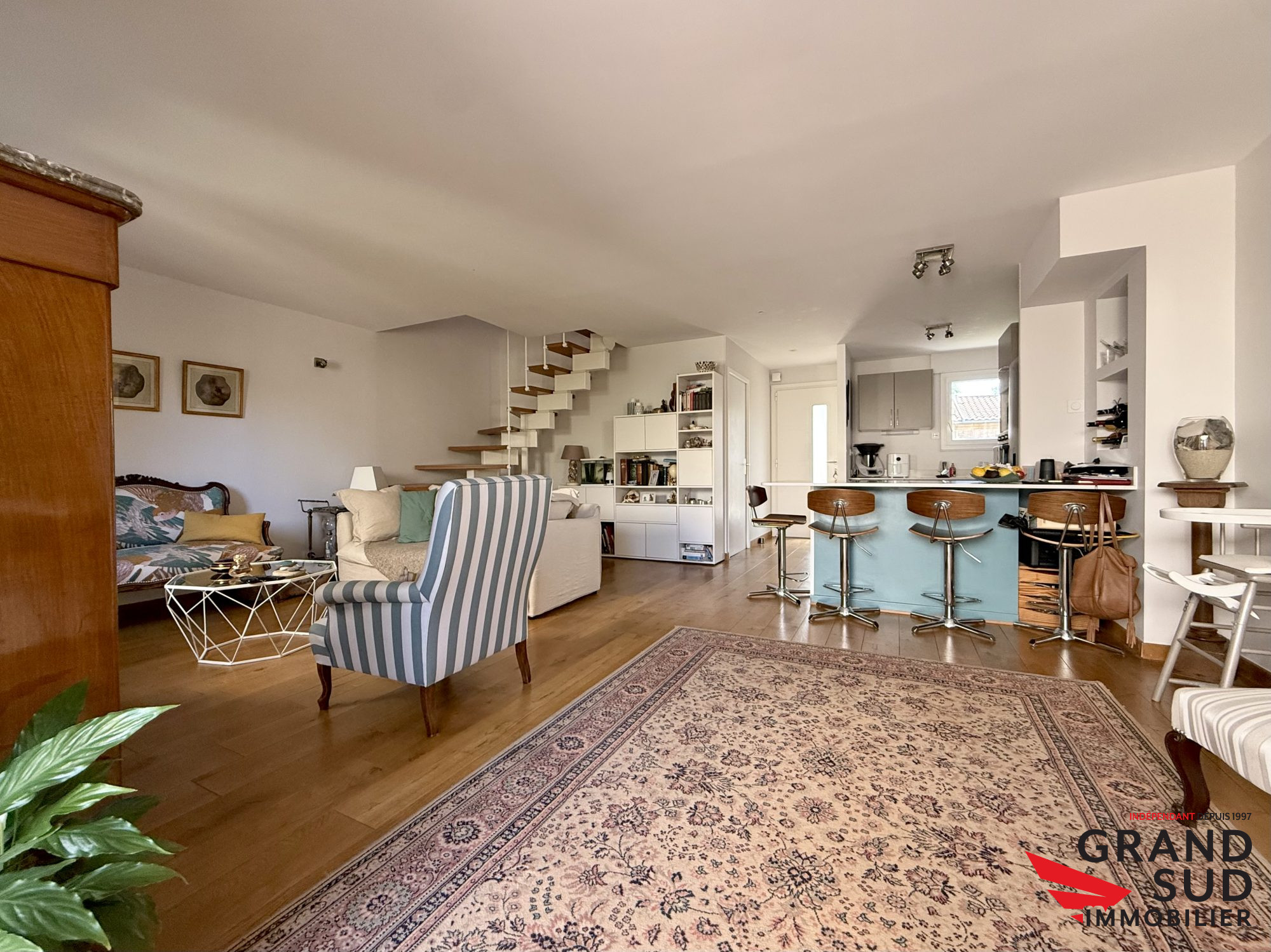 Maison Familiale Récente ? Calme & Commodités à Ludon-MédocSituée dans un environnement paisible, cette maison contemporaine allie parfaitement confort moderne et vie pratique. Idéale pour une famille, elle se trouve à deux pas des écoles primaires et de la gare, permettant de rejoindre Bordeaux facilement. Proximité des écoles et du train.Au rdc un Séjour avec cuisine ouverte, ultra-lumineux donnant sur une Terrasse de 60 m² , donnant sur le jardin.Rez-de-chaussée :Vaste pièce de vie conviviale ouverte sur l'extérieur un Bureau fermé, parfait pour le télétravail ou une chambre d'appoint. un cellier fonctionnel, WC et garage attenant.A l'étage :1 Suite parentale avec sa salle d'eau privative, 3 Grandes chambres lumineuses.Une seconde salle d'eau avec WC.La maison est équipé d'une pompe à chaleur et de la climatisation dans toute la maison pour un confort optimal.Vous pouvez nous contacter pour plus de renseignements et programmer une visite.