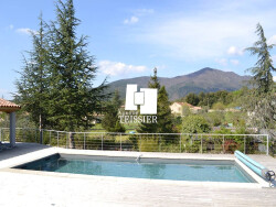 07140 les vans / exclusivité . VILLA DE STANDING 5 min. du centre des Vans, magnifique terrain paysagé, belle vue sur le serre de Barre, confortable villa de plain-pied offrant une belle pièce à vivre avec cuisine, 3 chambres, 2 salles d'eau et un cellier. Grande Piscine 'honoraires agence à la charge du vendeur'