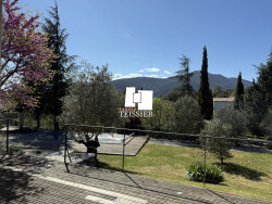 07140 les vans / exclusivité . VILLA DE STANDING 5 min. du centre des Vans, magnifique terrain paysagé, belle vue sur le serre de Barre, confortable villa de plain-pied offrant une belle pièce à vivre avec cuisine, 3 chambres, 2 salles d'eau et un cellier. Grande Piscine 'honoraires agence à la charge du vendeur'