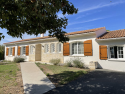 EN EXCLUSIVITE, Sur la commune de Muron dans un cadre privilégié, venez découvrir cette confortable maison de 1974 bien entretenue comprenant : entrée, salon/séjour avec insert à pellets, cuisine aménagée/équipée, grande pièce de vie, dégagement, 2 chambres, WC, salle d'eau, bureau (ou 3è chambre) et une buanderie. A l'extérieur, une grande terrasse avec barbecue et deux garages. Le tout sur un magnifique terrain constructible piscinable, clos et arboré, d'environ 3000 m2. Proche de toutes commodités (école, boulangerie, supérette, coiffeur, pharmacie, maison médicale etc ...) Les informations sur les risques auxquels ce bien est exposé sont disponibles sur le site Géorisques : www.georisques.gouv.fr