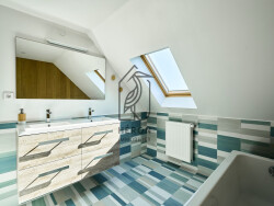 Au 1er étage, vous profitez d'une grande pièce de vie lumineuse avec cuisine équipée, d'une chambre et d'une salle de bain avec douche, meuble vasque et WC. Au dernier niveau, une seconde salle de bain spacieuse avec baignoire, double vasque et WC, ainsi qu'un grand espace de 37,8 m² au sol entièrement rénové, à aménager selon vos envies (chambres supplémentaires, suite parentale, bureau, salle de jeux ).