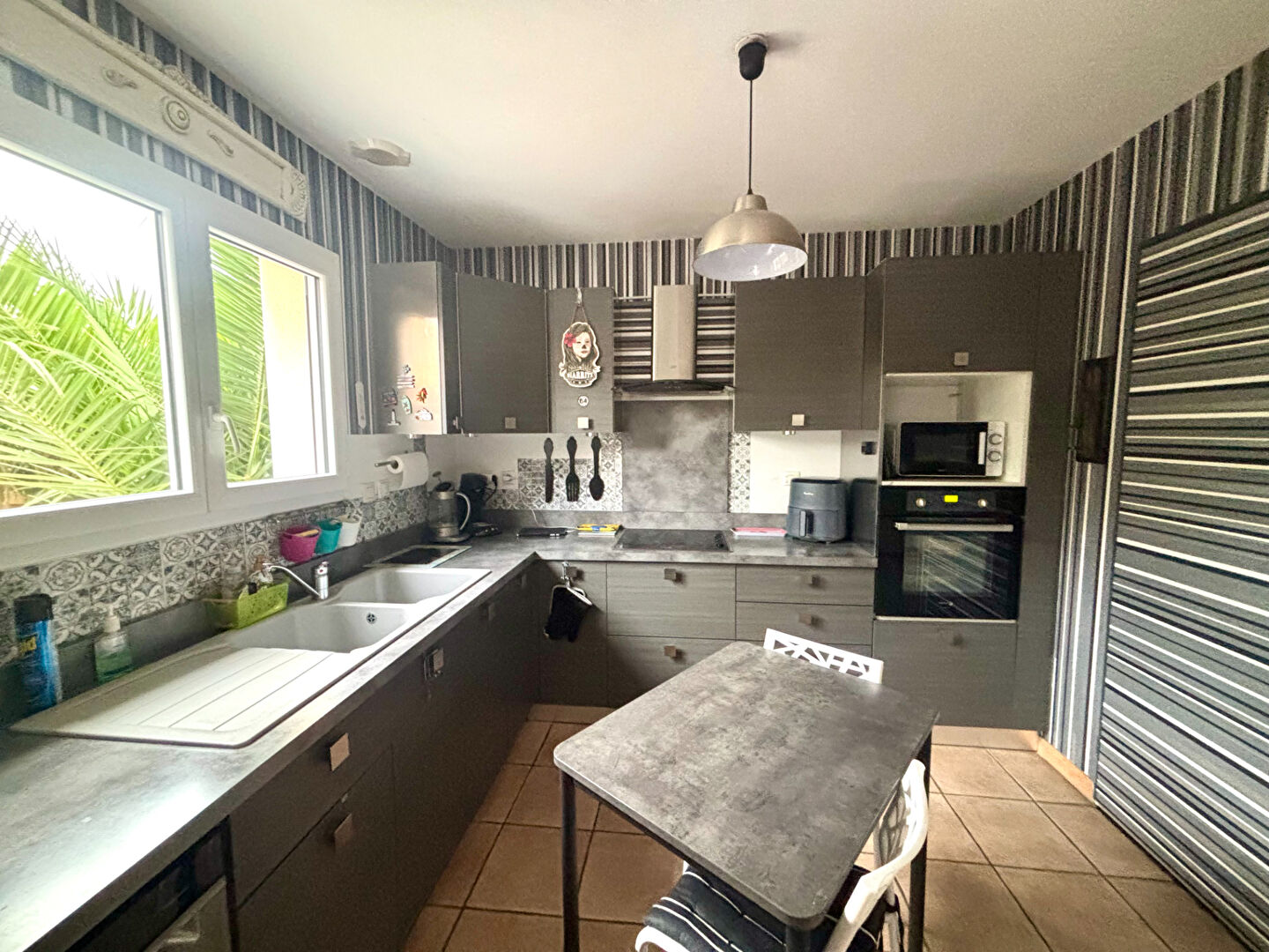 Terrasse et piscine plein sud à l'abris des regards. Le tout sur un terrain entièrement clôturé de 1200 m² avec arbres fruitiers. 3 places de parking.
